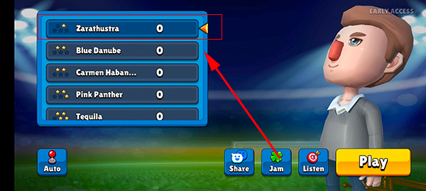 3. 您可以在左侧菜单栏中选择要播放的歌曲。星星越多,歌曲就越难。完成套装后,点击play即可进入游戏。