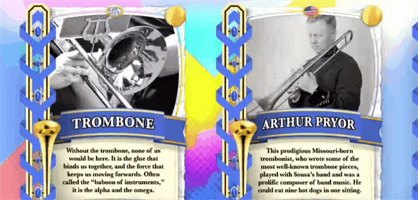 长号冠军是一款非常休闲且富有挑战性的音乐节奏游戏。扮演长号手。通过精确的按键操作和节奏控制,你可以演奏优美的音乐来挑战各种比赛和表演,赢得高分。和冠军头衔,曲目超过30首,包括国歌、进行曲、蓝调、古典、民歌等多种音乐风格。每首曲目都经过精心挑选和编排,带来丰富多样的音乐体验。