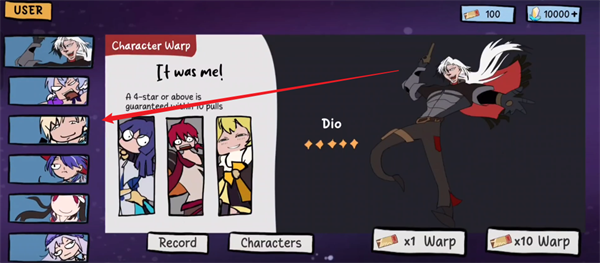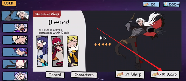 1.玩家可以在仓库中查看自己抽到的角色。还可以随意调整抽卡数量,使用海量素材来抽出你想要的角色。