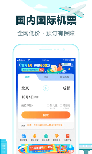 3、国内38家航空公司全覆盖,国际航空公司覆盖168家,提供优质特价机票资源。