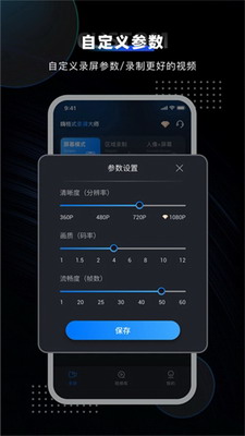 3.当您需要录制游戏、教程或其他视频内容时,您可以随时随地使用录制,它提供分辨率、码率、帧率等屏幕录制参数设置。