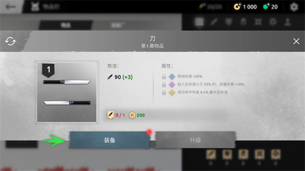 8.然后会弹出一个弹窗,显示刀的各种属性。可以点击左下角的装备进行装备。
