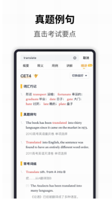 3、词汇精讲:常用词组、词组、大量优质例句、词义分析及反义词;提供英语定义和词源,帮助进一步理解和掌握词汇。