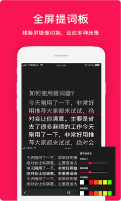 - 手机是提词板,全屏显示提示内容,随意切换个性化主题。可搭配外接摄像头、摄像机等专业设备使用,高端场景也能轻松提示电报。