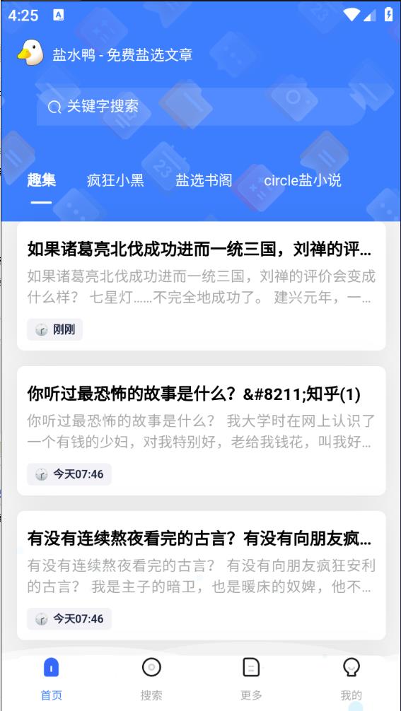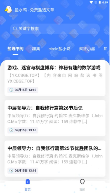 咸鸭子是一款流行的小说软件。拥有丰富的小说资源。它操作简单,图形简单。涵盖了网络上最流行的小说和各种题材。它具有关键词搜索功能,让您轻松找到自己喜欢的小说。快来体验吧。