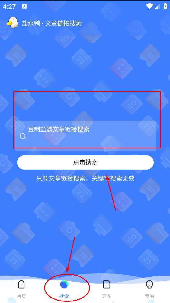 点击进入软件,点击搜索,复制要查询的链接,点击搜索。