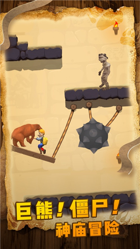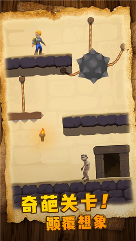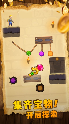 神庙大冒险最新完整版这是一款玩法轻松休闲的益智游戏。玩家进入游戏后需要面对各种类型的有趣关卡。你将需要使用割绳子的方法让你的角色通过关卡并获得找到里面的宝藏,游戏会推出多种游戏关卡。每个关卡中的障碍和难度都不同,可以给你带来完全不同的游戏体验。该版本将是游戏的最新版本,增加了新的关卡和玩法,让你在探索、突破关卡的过程中保持新鲜感。
