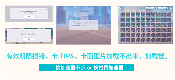 1、有效期限报错,卡TIPS,卡面图片加载不出来,加载慢怎么办?更换加速器节点或更换为付费加速器