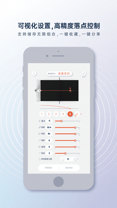 2、内置初级至专业训练组合国家级教练手调测试,保证球性能