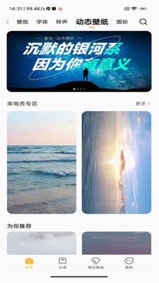 《小米主题壁纸app下载官方版2025最新版》 是具有丰富主题壁纸资源的强大而实用的主题美化软件。该软件的界面非常清爽且简单,整体接口非常直观,并且概述了功能。在此阶段,主界面分为四个主要部分,即:主页,分类,每日选择和我,每个部分具有相应的功能,使用非常方便。同时,在此软件中,用户不仅可以快速找到他们喜欢的主题壁纸,而且可以找到适合它们的手机。铃声,字体或锁定屏幕接口,您可以单击一键切换自己喜欢的主题。无论是超级简单,轻便的奢侈品,新鲜度,可爱性,还是各种风格的主题,例如人格趋势,美学文学等,这里都是所有的,而且该软件还具有大量美丽的小部件用户可以自己选择,允许用户随意调整手机主题并创建自己的个性化主题壁纸。此外,该软件解决了差异。由于用户使用的手机的不同分辨率,因此根据当前的手机尺寸匹配系统提供的壁纸和锁屏界面,因此您可以自信地使用它。