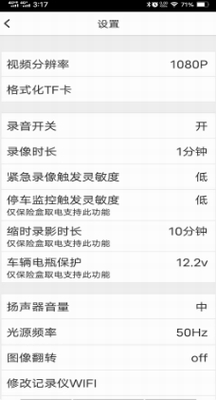 2。记录状态,图片质量,停车监控和移动检测都由手机控制。