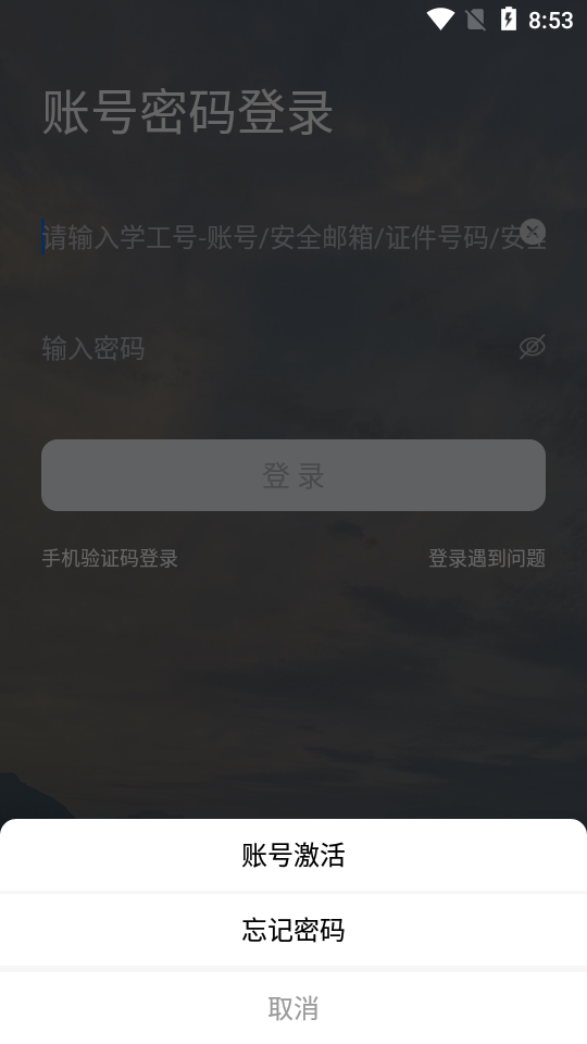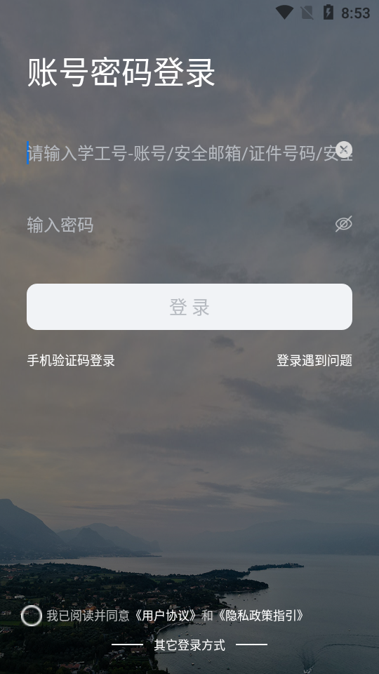 下载并安装软件后,进入应用程序。登录时需要提供学号和密码或使用手机验证码登录。