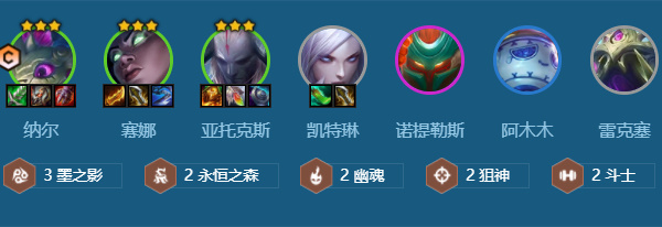 纳尔、赛娜、亚托克斯、凯特琳、诺提勒斯、阿木木、雷克赛、贾克斯。