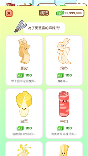 1。在此网站上下载游戏后,在制作辣热锅之前先输入游戏并首先购买成分。