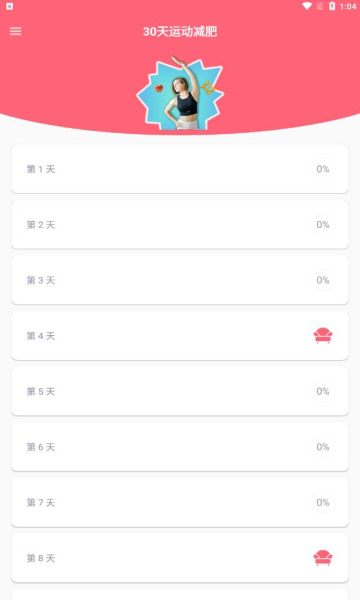 1.运动减肥计划app 日常锻炼中会不断增加训练负担和难度。运动减肥适合任何人,任何地方都可以锻炼;