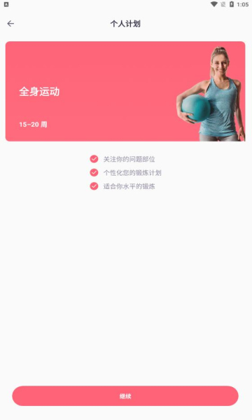 运动减肥计划是一款适合多个年龄段用户,满足运动减肥、塑身等多种需求的自律减肥软件。软件将为用户制定合适的运动计划和专业指导,规划合理,服务一流。赶快行动吧!