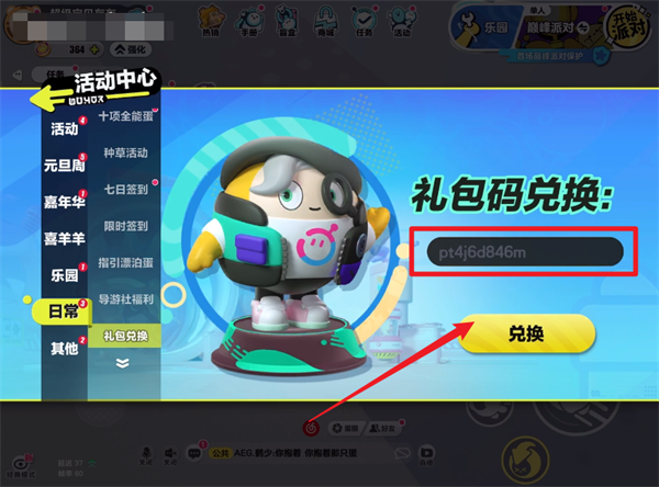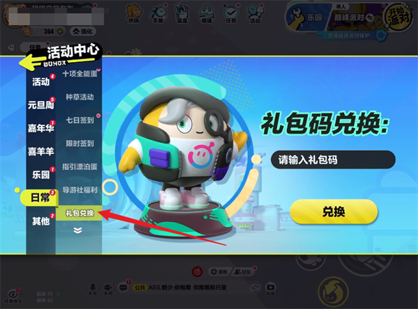 4。接下来,您将可以看到事件接口以赎回礼品包,您需要单击。