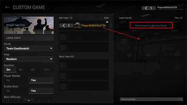 2。玩家在输入框中输入朋友的ID或游戏名称,然后单击搜索。