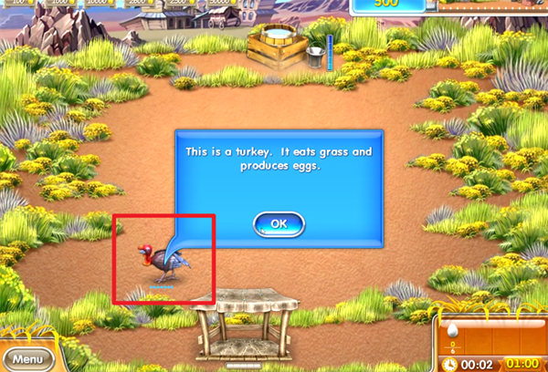 5。单击屏幕将农场浇水,然后种草以让火鸡吃饭。