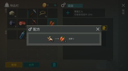 3。进入背包界面,我们可以看到每种种子可以收获两个胡萝卜。