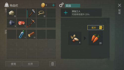 1。首先,我们打开背包,然后单击使用零件解锁种植。