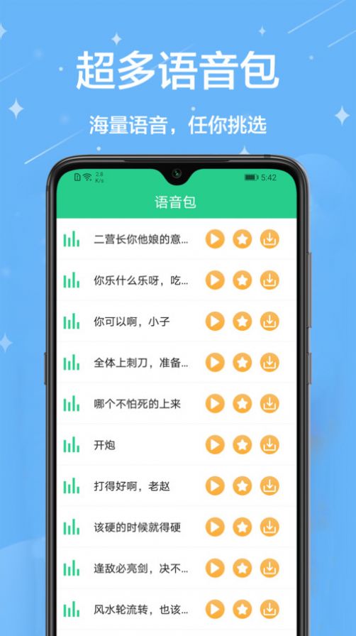 多种音效:这款变声器应用提供了多种音效,包括男声、女声、儿童声、老人声等。用户可以根据自己的需要选择合适的音效来改变自己的声音。