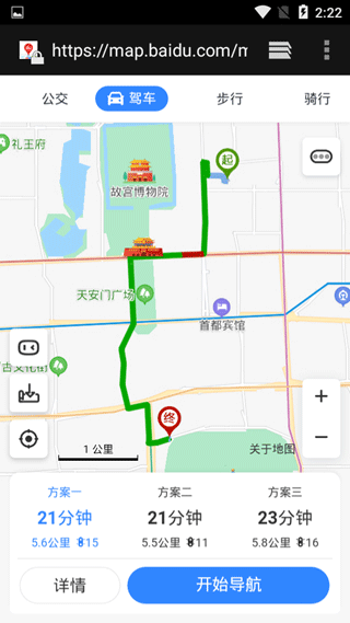 3、此时会出现具体的导航路线。我们可以直接查看地图继续,或者通过导航进行操作,比如点击下面的开始选项。