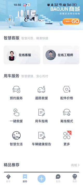 3.点击服务,您可以在这里解决您的车辆问题并预约维修;