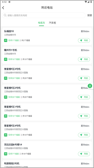 1、搜索附近换电站:您可以轻松查找附近两轮车充电桩、汽车充电桩站点的详细信息,所属号码为驴充充。