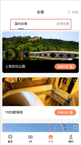 5、“街景”中可以查看“全国街景”和“全球街景”;