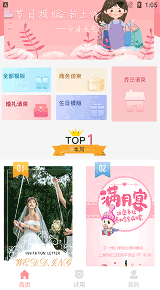 1、海量模板资源:涵盖婚礼、生日、宝宝百日宴、满月、乔迁、升学、商务、开业、年会、活动等丰富的场景模板。从清新浪漫到古典大气,从时尚现代到童趣可爱,风格多样,满足多元审美。