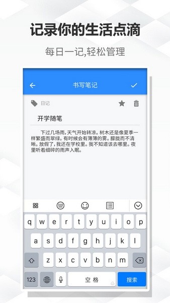 3.随时随地记录笔记,让你的记录简单方便,排版的应用简洁优雅,让你一目了然。
