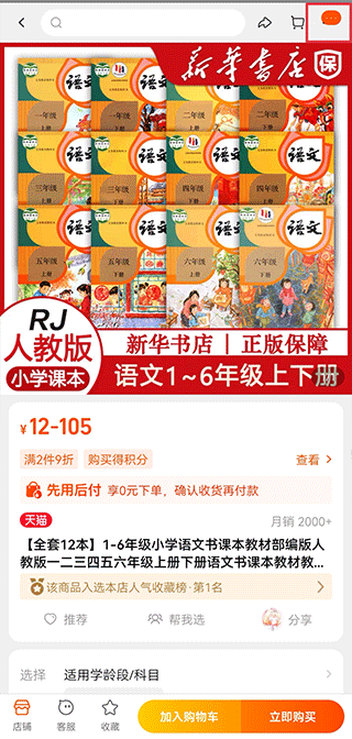 4、首先在第三方购物平台的商品中点击右上角的按钮