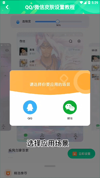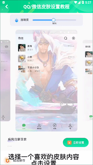 1.通过本网站下载并打开,选择您喜欢的皮肤内容,点击“立即设置”;