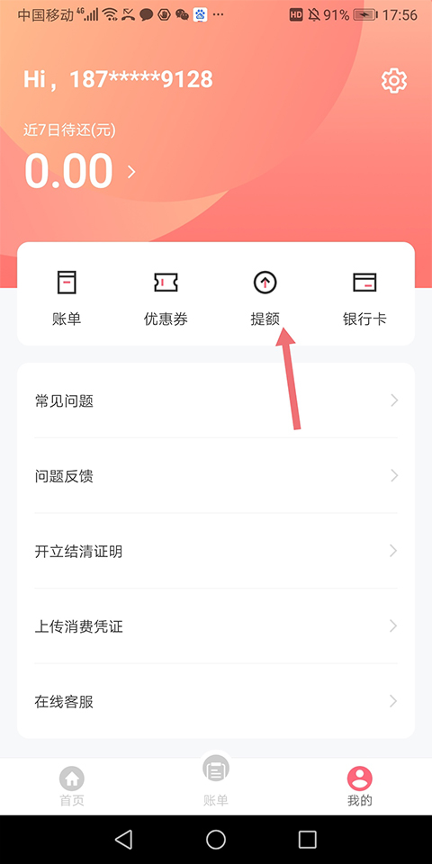 如果您需要增加金额,可以进入【我的】页面,点击【增加金额】进行操作。