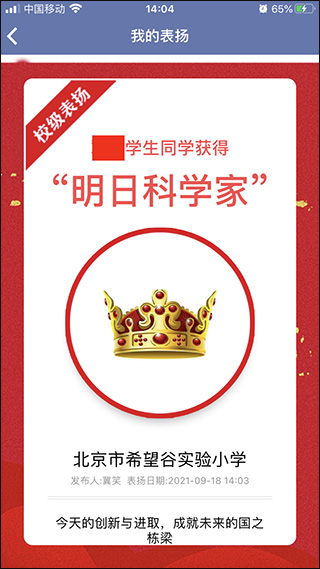 2、软件除基本功能外,还附带表扬徽章,由学校组织对班级和学生个人采取表扬措施。